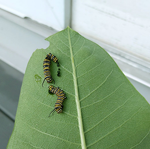 This one was completely unexpected and it actually took me awhile to figure out what had happened. At first, all I saw was the caterpillar's grossly discolored, swollen body. I had never seen anything like that before. Upon closer examination, however, I saw the Green Lacewing larva behind it. If you look closely at the first photo, you can see the lacewing's head at the top, and the side of its gold body on the right side, behind the dead caterpillar. Green Lacewings are common here in Iowa and across the midwest and they eat voraciously of other soft-bodied insects, including Monarch larva. I have no idea how this lacewing got into the enclosure. The only thing I can think of is that it was attached as an egg to a milkweed leaf that I brought in, and then it hatched once it was inside the enclosure? Lacewings do leave their eggs on milkweed. But I don't know. It only happened this one time. |