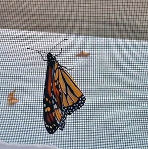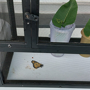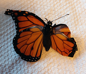 This butterfly was normal except for a crumpled wing. The wing never did quite straighten out, but when it came time to release, it flew out on its own. |