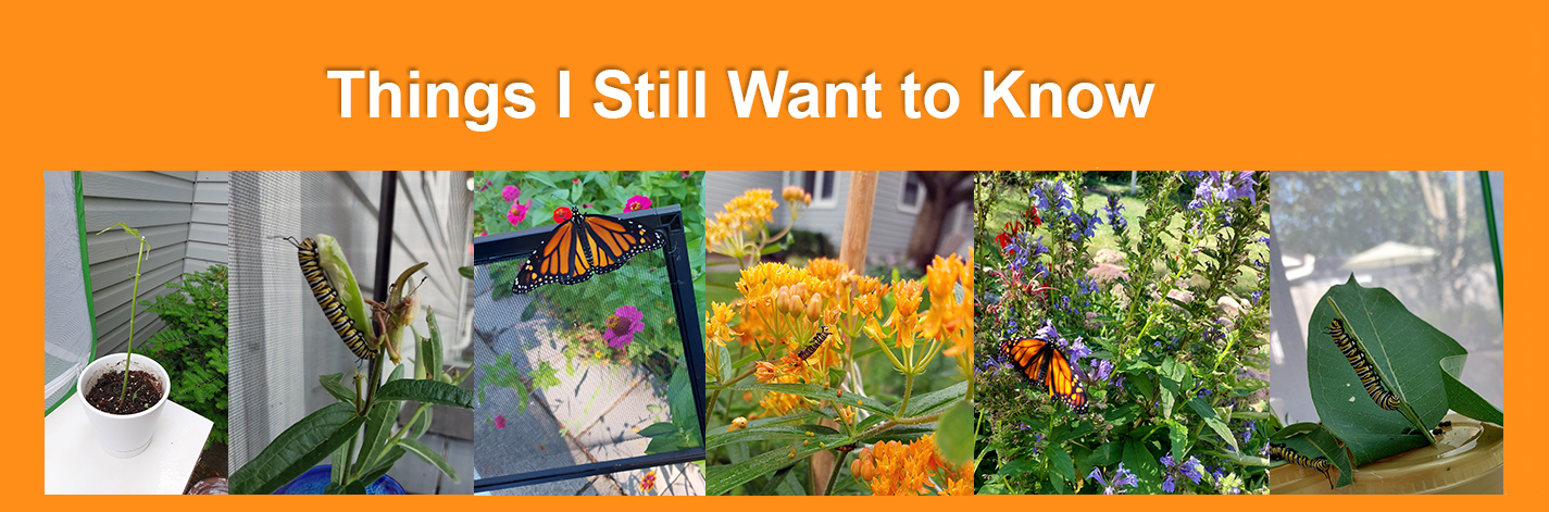 ![]() And finally, the Big Question. It is estimated that well over 90% of Monarch eggs and caterpillars in the wild are killed or eaten by predators. Some estimates are as high as 98% - 99%. By the law of the jungle, survival of the fittest, these were not "meant" to survive; nature weeds out the weak ones and they are needed as food for other forms of life. But what kills them and when? In at least one experiment, F. montana (ants) found and ate 100% of Monarch eggs within the first 90 minutes. In the wild, a few might escape the ants. But does survival of the fittest actually come into play at this point? For example, placement of the eggs? Every egg I have ever found in my milkweed patches have been on the under side of a milkweed leaf. I have not found any anywhere else. The question now is: Is it even possible that the eggs that were eaten by predators were somehow the weak ones, "meant" to not survive? How can an egg determine its own fate? How can there be a "strong" egg or a "weak" egg? A well-hidden or well-placed egg that allows it to somehow hide from predators? As the experiment with ants, referenced above, shows, Monarch eggs are predated on 100% when F. montana is present. It seems unlikely that this has anything to do with the strength or weakness of the egg. It could be that very small caterpillars bring into the equation the survival of the fittest, by being able to hide or evade predators, but it is unlikely this is true of eggs. If I bring eggs into a safe environment, how would this be allowing weaker, "less fit" butterflies to be released into the population as a whole? Obviously, more data is needed. My data show that in 2023, 91% of my backyard-raised eggs and caterpillars morphed into butterflies and were released. In 2024, the percentage of survived-and-released was at 76%. |